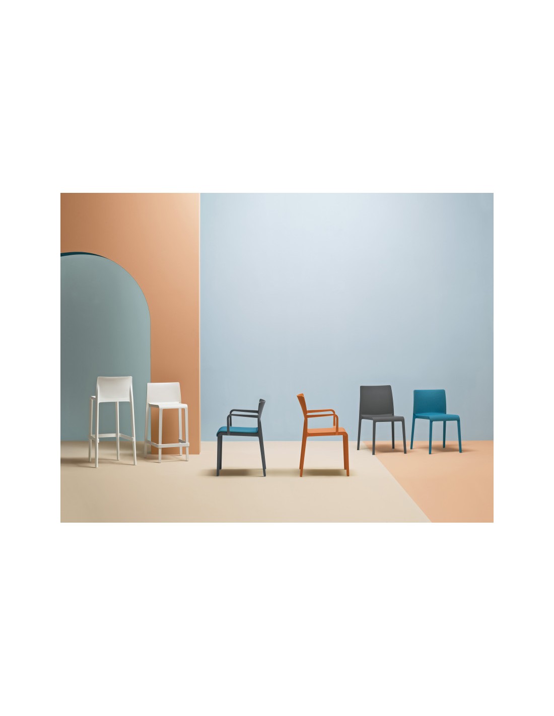 Країна: Італія. Дизайн: Claudio Dondoli and Marco Pocci. Стілець широкого застосування. Підходить як для внутрішнього, так і для зовнішнього використання. Стілець для кафе, барів, ресторанів біля води, спа-салонів. Може використовуватися на будь-якій терасі, в саду. Міцний, легкий, стійкий до ударів та вологи. Матеріал: литий поліпропілен, посилений скловолокном. Стілець може поставлятися в різних кольорах. Максимальне навантаження: 120 кг. Гарантія: 3 роки.